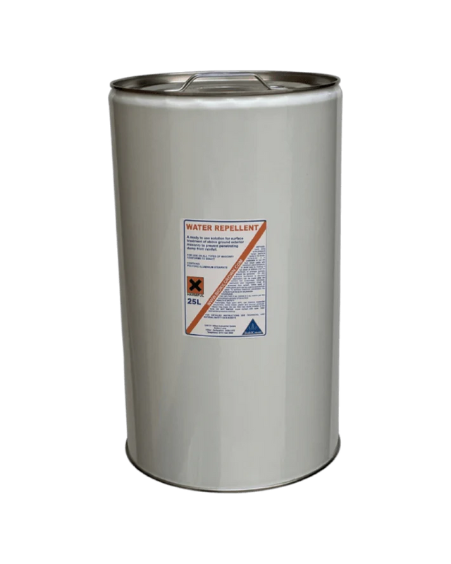 A solvent based solution for surface treatment of above ground exterior masonry to prevent penetrating damp from rainfall. Provides superb weather protection for bricks, mortar, and concrete by forming a transparent, waterproof barrier.